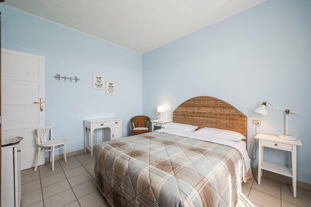 Camera matrimoniale con bagno interno dotato di doccia e asciugacapelli. Presenti aria condizionata e WI.FI. La camera è utilizzata anche come uso singola, DUS.